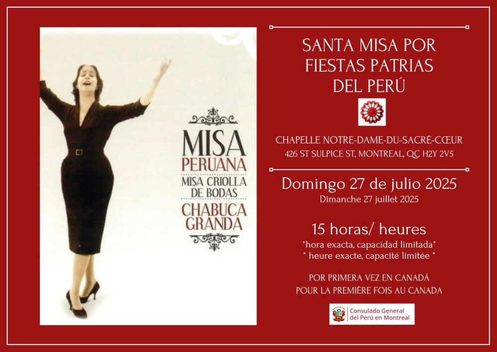 En el marco de la tradicional misa que se realiza en celebración del 204ºaniversario de la Independencia del Perú, el Consulado General del Perú en Montreal presenta una joya musical poco conocida de la gran compositora peruana Chabuca Granda: su Misa Criolla Peruana, una obra que trasciende lo litúrgico para convertirse en un testimonio artístico y cultural de la costa peruana.