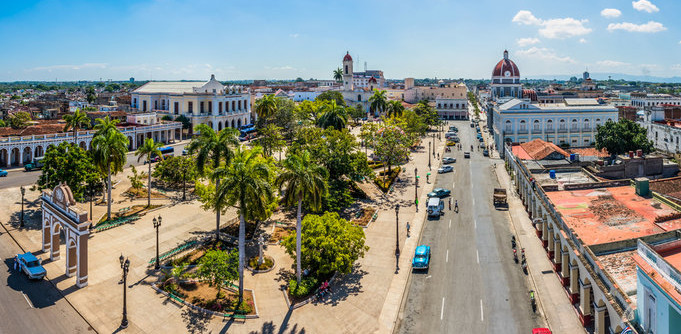 Classée Patrimoine mondial de l'UNESCO en 2005, Cienfuegos se distingue par son ambiance maritime, ses rues tranquilles et son atmosphère sereine, à l'abri du tourisme de masse. Son centre historique, riche en histoire et en harmonie, invite à découvrir des joyaux architecturaux tels que le théâtre Tomás Terry, le musée des Arts Palais Ferrer — une perle bleu ciel d'une grande beauté architecturale — et la place José Martí, ancienne Plaza de Armas.