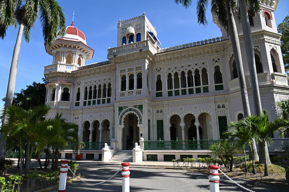 Avant de poursuivre notre route vers Trinidad, notre dernière étape fut le majestueux Palais du Valle, construit en 1919 par l'entrepreneur asturien Asiclo del Valle Blanco. Son architecture, un mélange de styles arabe, baroque, rococo et néoclassique, éblouit par son élégance. Chaque salon possède son propre caractère : l'un d'eux inspiré de l'Alhambra, avec des marbres de Carrare, de l'albâtre, des vitraux et des bois précieux. À l'étage supérieur se trouve un restaurant et un bar panoramique offrant des vues spectaculaires sur la baie.